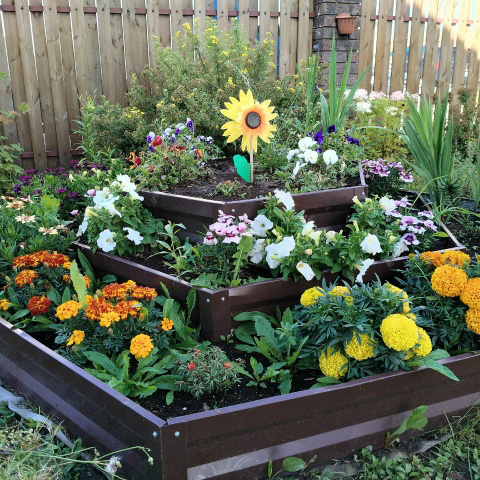 Клумба трехъярусная квадратная цветная
